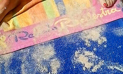 Glorious bootyful brunette bikini girl Cassie rides shaft mad on the beach
