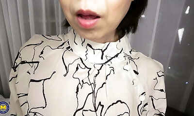 Japanese GILF takes hard salami after shower