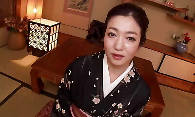 Mature Woman in Ebony Yukata Has Sex with Man at Hot Spring Motel