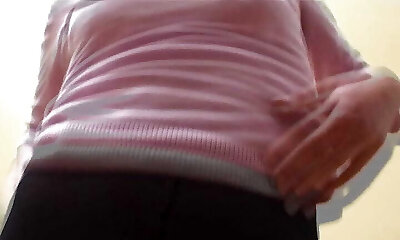 Stunning young chick is playing with her jaw pulling down huge hooters