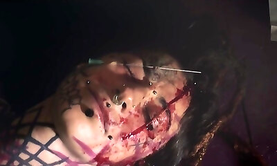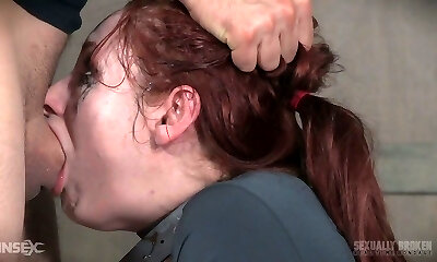 Tightly strapped brunette hottie Veruca James gets pummeled in mish style hard