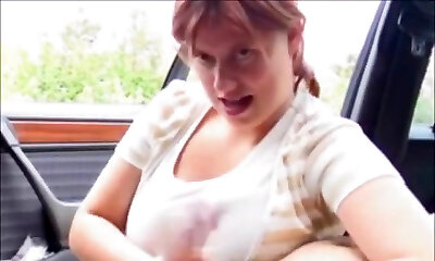 They get a xxl fun bags girl in the car to film her fucking