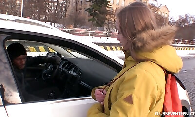 Sexy czech teen girl having fuckfest with old man for helping with her car