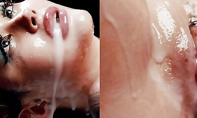 Freak cum and piss swapping from a teen girl and a cougar, at a hard bareback GangBang!