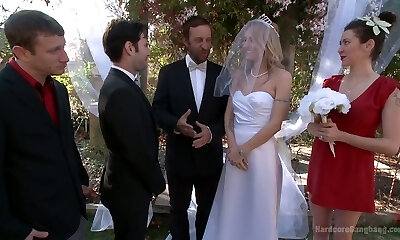 Blind folded bride Natasha Starr is porked by groom and several dudes