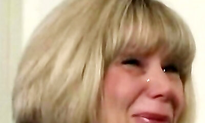 Mature cougar tries hardcore to stick her ass on a hefty fake penis.