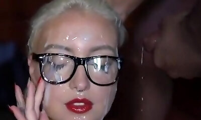 Bukkake beautiful girl with glasses (slowmotion)
