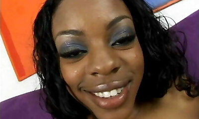 Black fellow wearing glasses fucks shaved snatch of sexy ebony teen