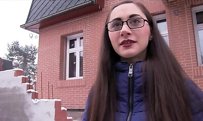 18 years schoolgirl with glasses and crimson lipstick swallowed all cum Pov.