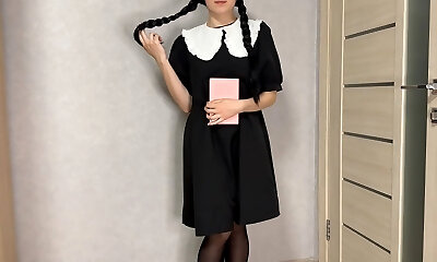 Cute goth exgirlfriend slut Kitty stripping mini skirt for