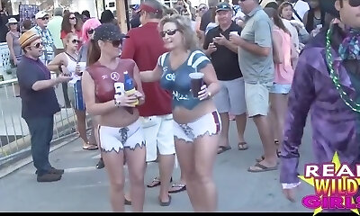 nippleringlover walking topless on public beach - pierced tits big nipples with nipplechain - demonstrating pierced pussy
