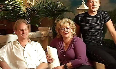 Old swinger couple has some fun with young dudes charming gf