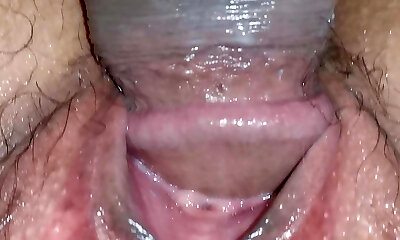 缓慢的冲击妻子's cooch和撒尿向内. 特写镜头